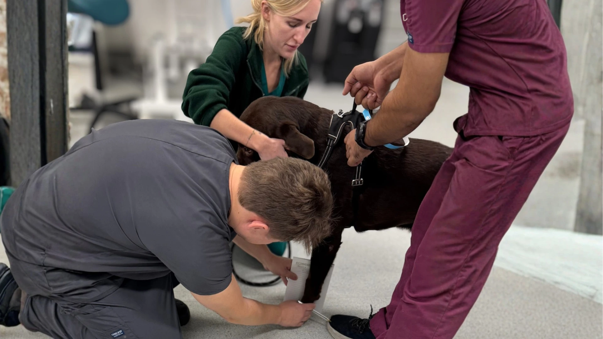 On December 4th, 2025, the Advanced Vetcare London surgical team, led by Jakub Köcher-Vodnárek performed Max's surgery. The goal was to permanently fuse the bones of his wrist joint together, eliminating the painful movement and instability that had been causing his lameness.